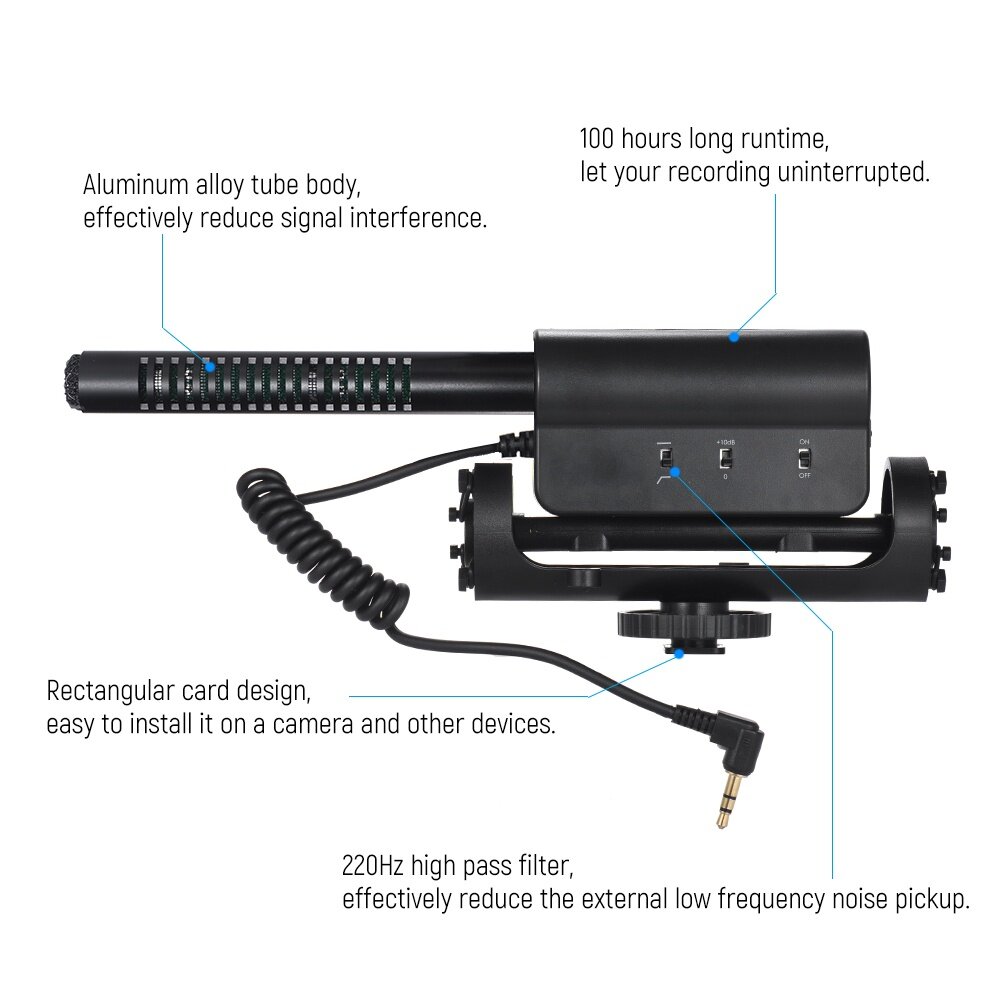 Note: One 3.5mm MIC socket and one hot shoe are definitely required of your camera. Please notice the hot shoe before your purchase. Specifications: Transducer principle: Back electret condenser