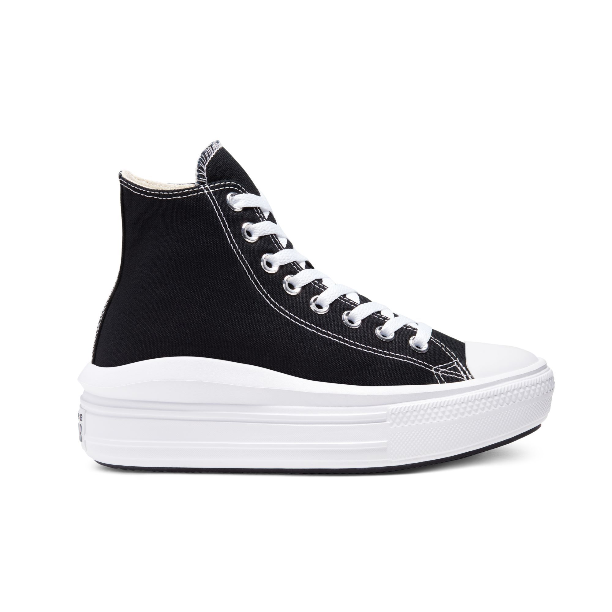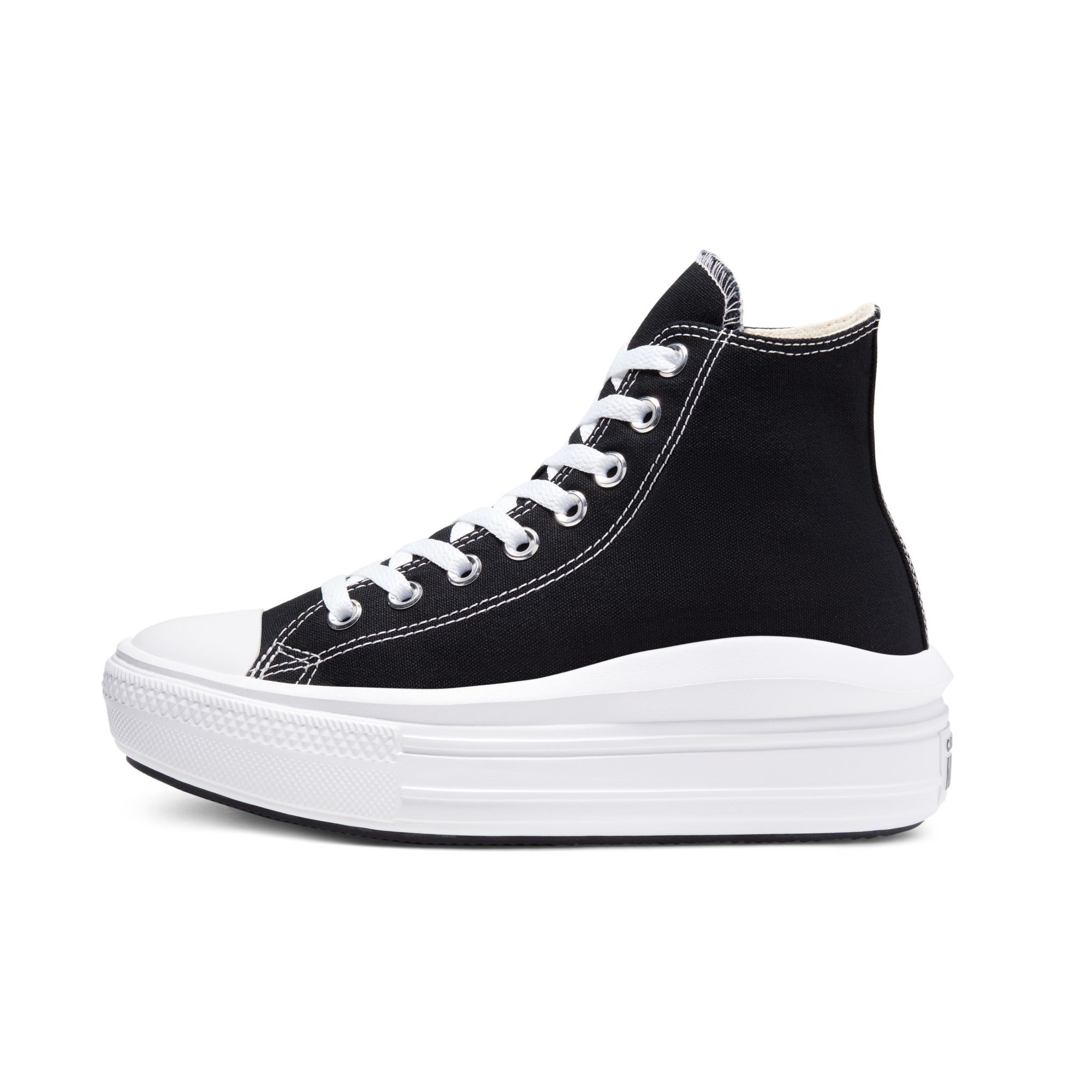 HER MOVE.You already know our high-top—that canvas upper, the diamond pattern outsole, and iconic ankle patch. We streamlined this classic silhouette for her and dropped it into an ultra-lightweight EVA cupsole, giving you the Chuck Taylor Move. With extra comfort and height. There she goes.
