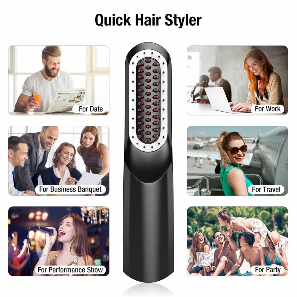 【Mini Size, Convenient to Carry】This is a wireless portable hair and beard straightening brush, which is lightweight and rechargeable via the Micro USB cable, so you don't have to worry about wire tangling anymore. No matter where you are, you can take it with you and use it to smooth out your hair or straighten your beard.