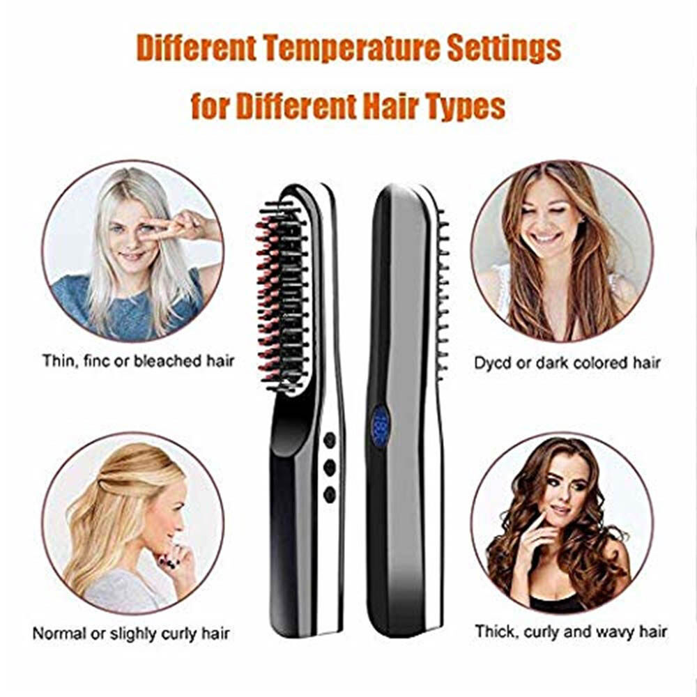 --PORTABLE CORDLESS STRAIGHT HAIR COMB, CONVENIENT TO CARRY: No need to connect to the socket, don't worry about being caught by the wire. No matter where you are, you can use our hot brush to scrape your beard straight and smooth. Suitable for travel, home, office etc.