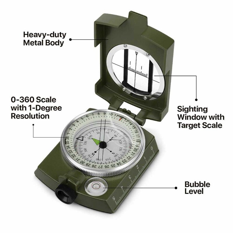 1pcs Professional Military Sighting Compass For Outdoor Hiking Camping Activities