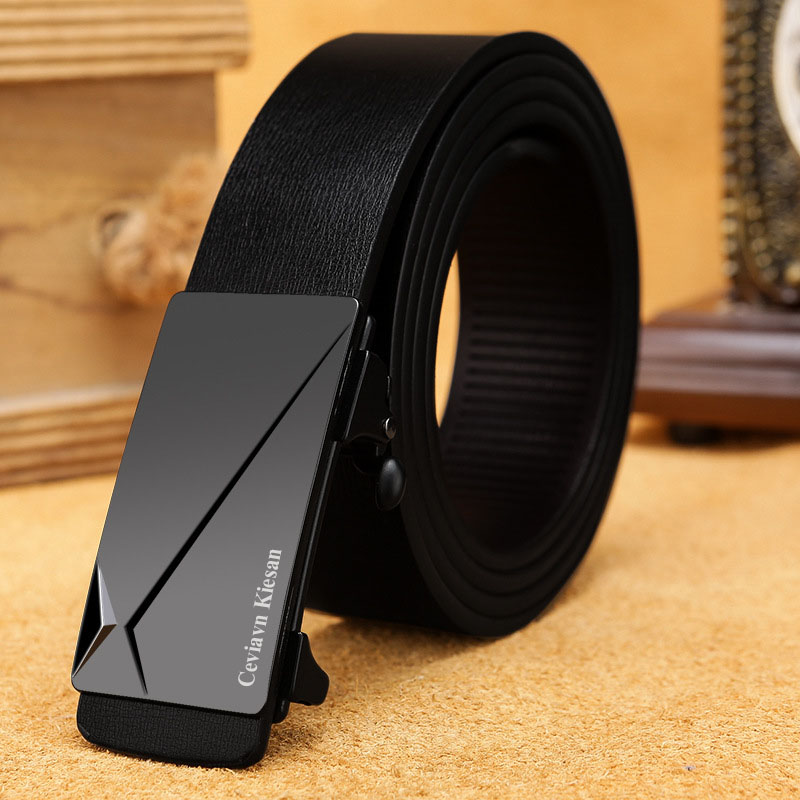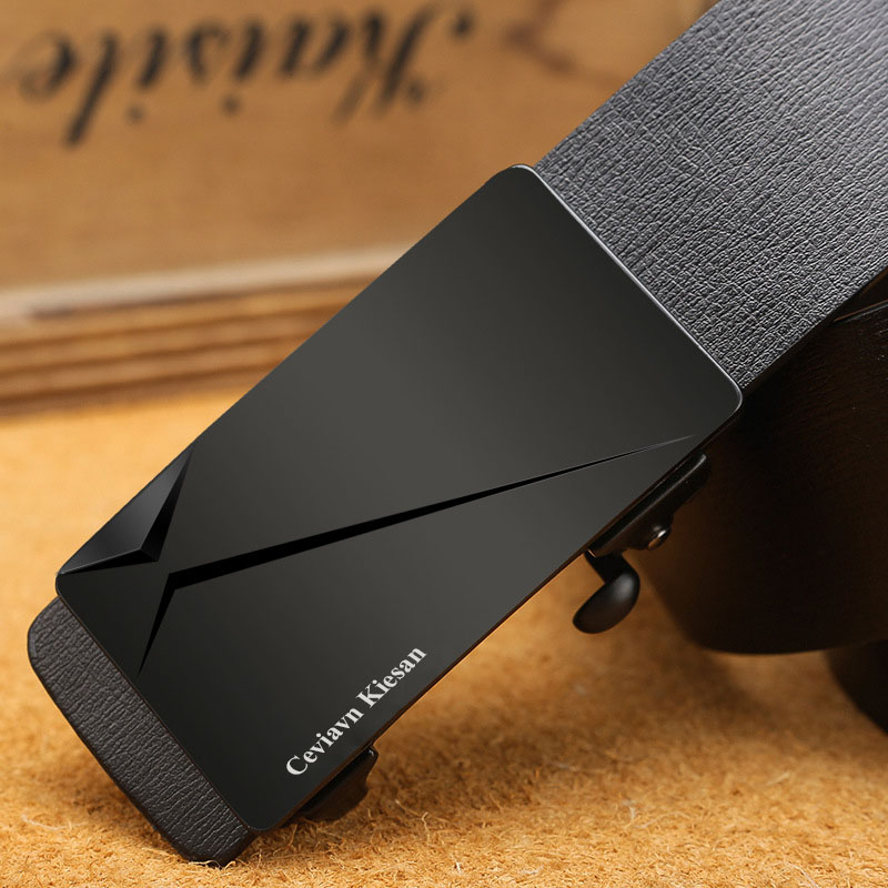 2022 Men's 3.3cm Business Genuine Cow Leather Belt Toothless Automatic Buckle Suit Pants Belts for Men 105-130cm