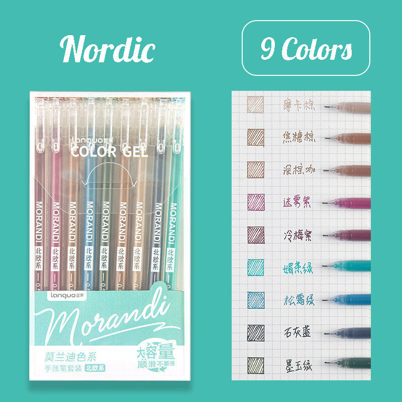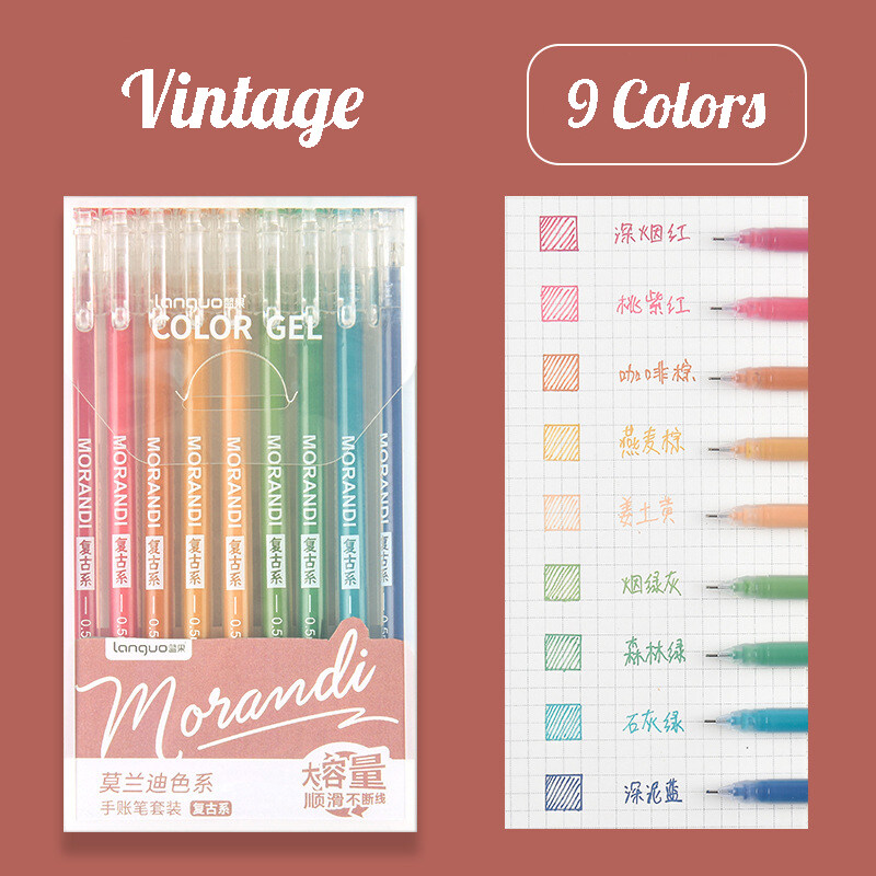Momona 9Pcs Journal Pen Set 0.5mm Morandi Colors Gel Pen For Journaling Scrapbook Diary Planner DIY Painting Stationery Supplies
