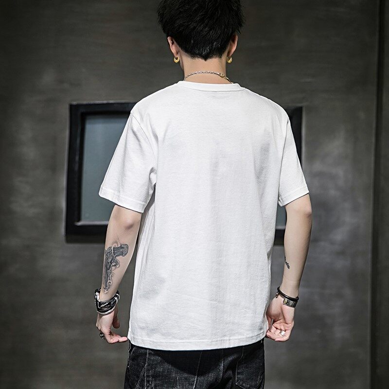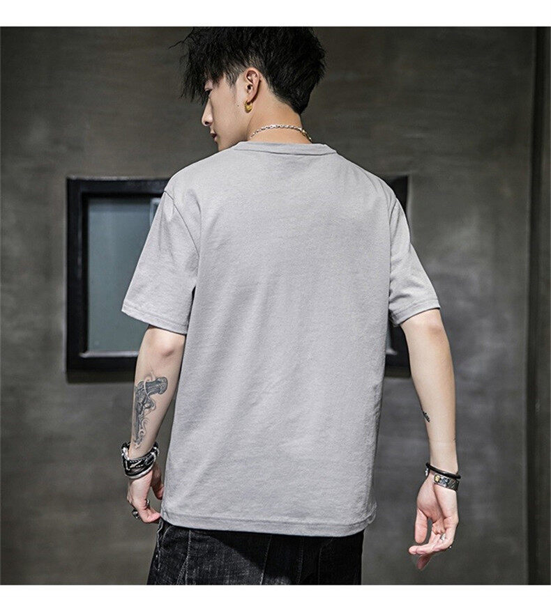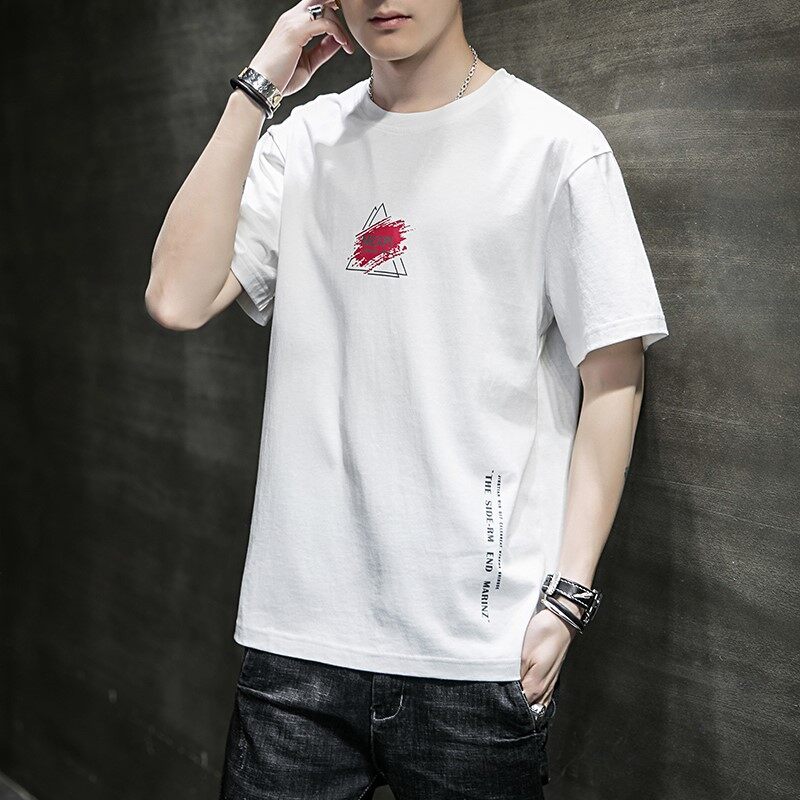 [M-3XL] t shirt Men New Korea Style Large Size Print t-shirts Clothes Fashion Tops Causal Short Sleeve Oversize Korean Style Tees
