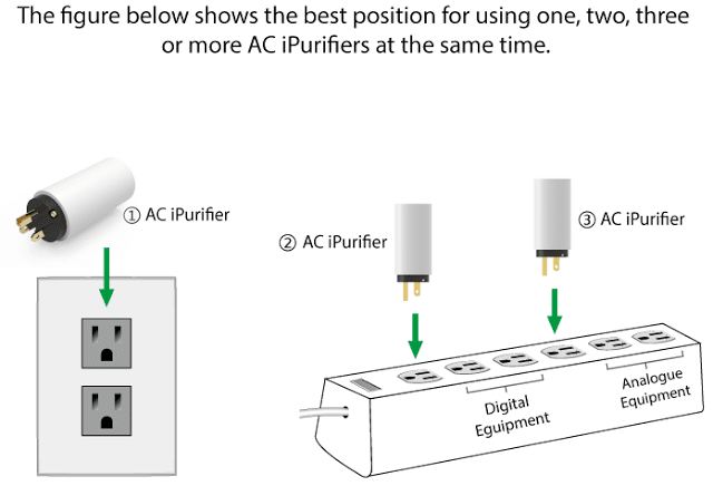 • The more AC iPurifiers you use, the cleaner the overall power. If the AC iPurifier is placed in the middle of a power strip, it will also act as a noise shield. Noise is reduced, isolated and confined to the respective left/right sections of the AC iPurifier.