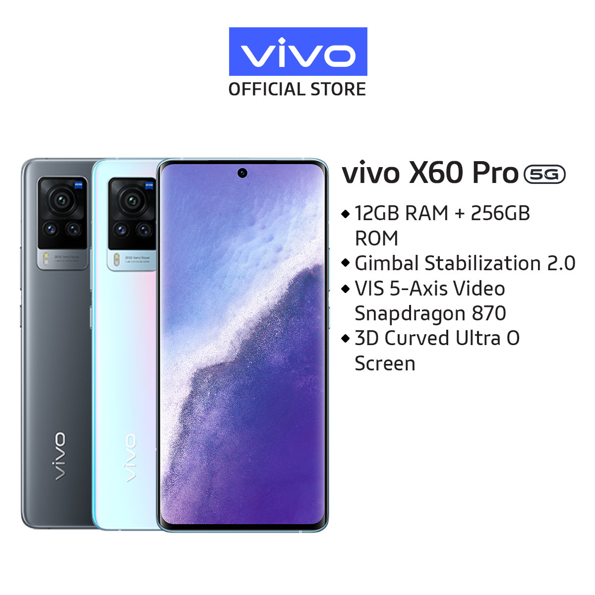 vivo X60 Pro 5G [12GB+3GB/256GB] Gimbal Stabilization 2.0/ VIS 5-Axis Video Stabilization/ Extreme Night Vision 2.0/Qualcomm Snapdragon 870/ 3D Curved Ultra O Screen/ HDR10+ and Hi-Res Certifications