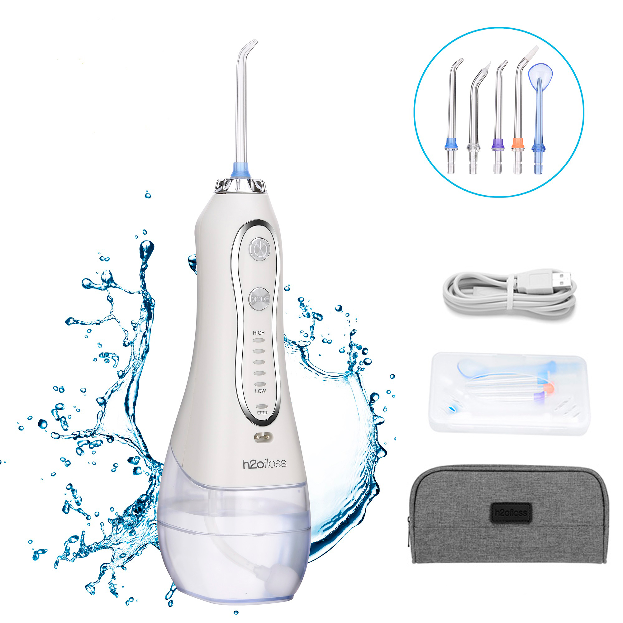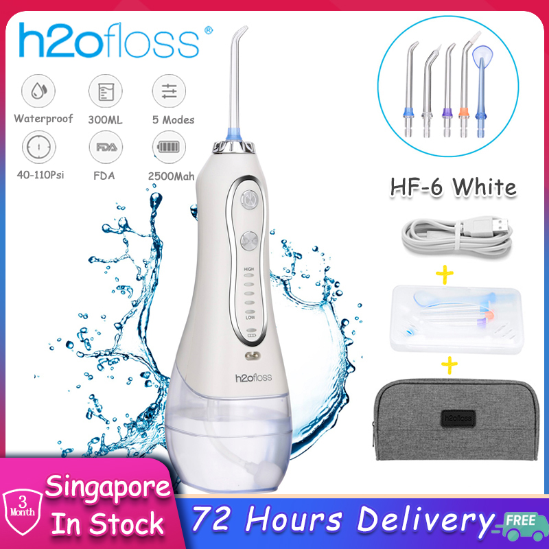 H2ofloss Portable Oral Dental Irrigator Cordless Wate Flosser Waterproof Teeth Cleaner with 5 Modes 5 Jets Tips and 300ml Detachable Reservoir Rechargeable Dental Flosser for Brace Bridges Care, Home