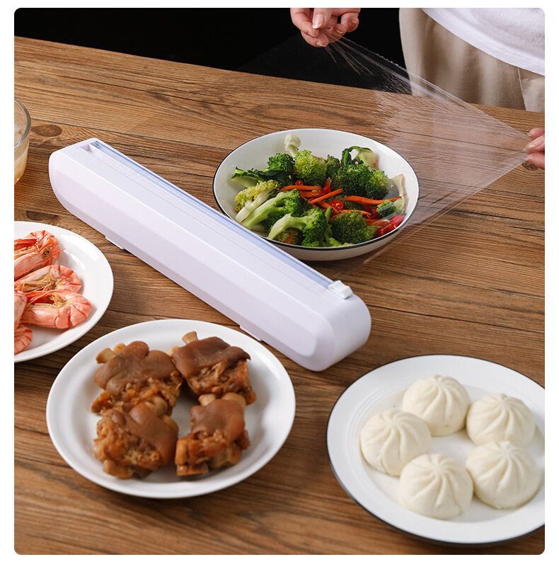 Cling Wrap Dispenser With Cutter Suction Cup Type Plastic Film Cutter Household Divider Adjustable Storage Cutting Box Cling Film Dispenser with Cutter Creative Kitchen Supplies Tool Professional BPA
