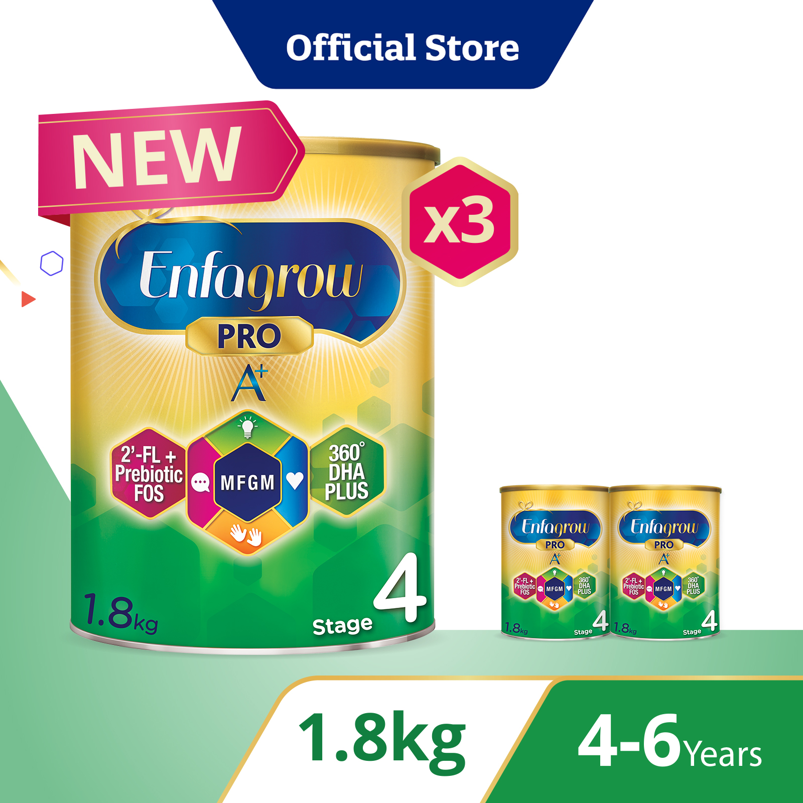 [Bundle of 3][NEW MFGM + 2'-FL] Enfagrow Pro A+ Stage 4 1.8kg for Children (4-6Y