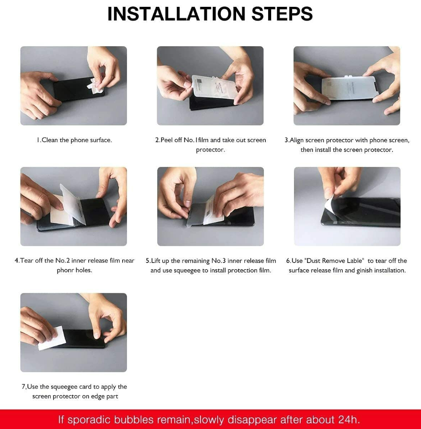 1. Be in a still environment (switch off fan). Clean and dry phone screen using wet then dry wipes provided. Use the dust sticker provided to remove any dust.