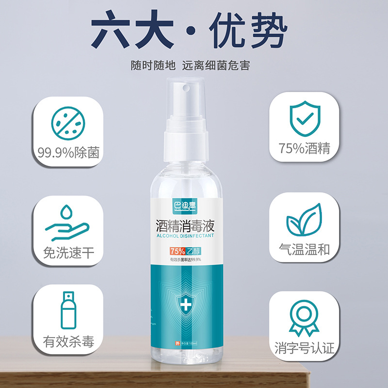 Shelf life: 2 yearsNet content: 100mlColor: As pictures shown.Main ingredient: 75%±5% alcoholNote: