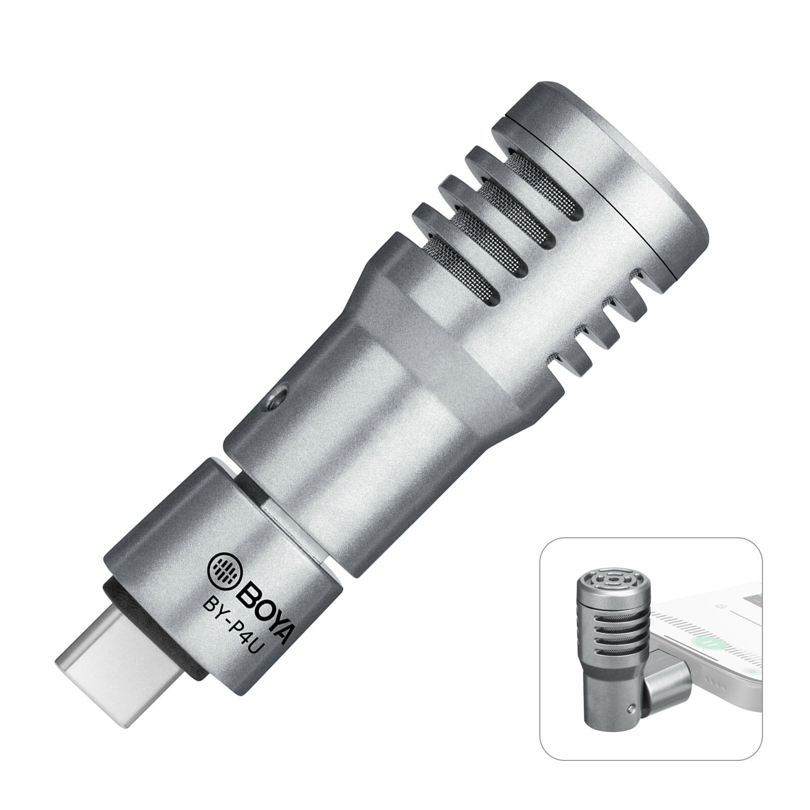 BOYA BY-P4U Omnidirectional Condenser Microphone Mini Mic with Windscreen Type-C Port Replacement for Android Smartphone Tablets Vlog Shooting Live Stream Interview