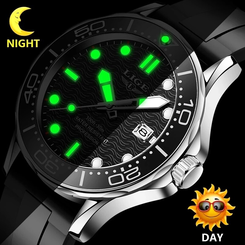 LIGE Sport Diver Watches For Men Stainless Steel Waterproof Date Clocks Men Watch Military Quartz Watch + Box
