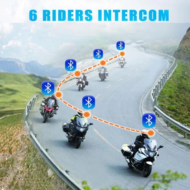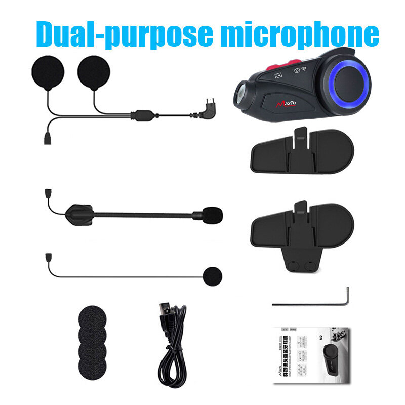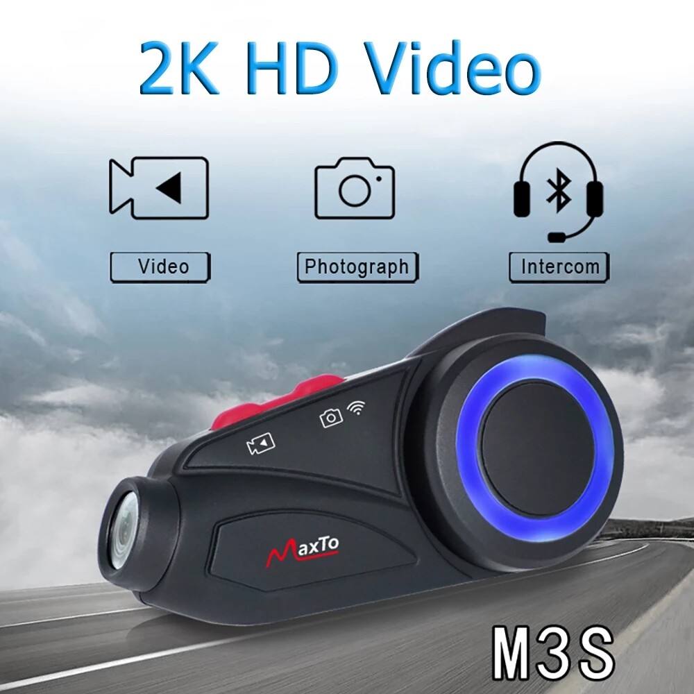 Maxto M3S Motorcycle 1000m Group 6 Riders Bluetooth Helmet Intercom W/WiFi Video Recorder Waterproof 2K 1440P DVR Dash Cam