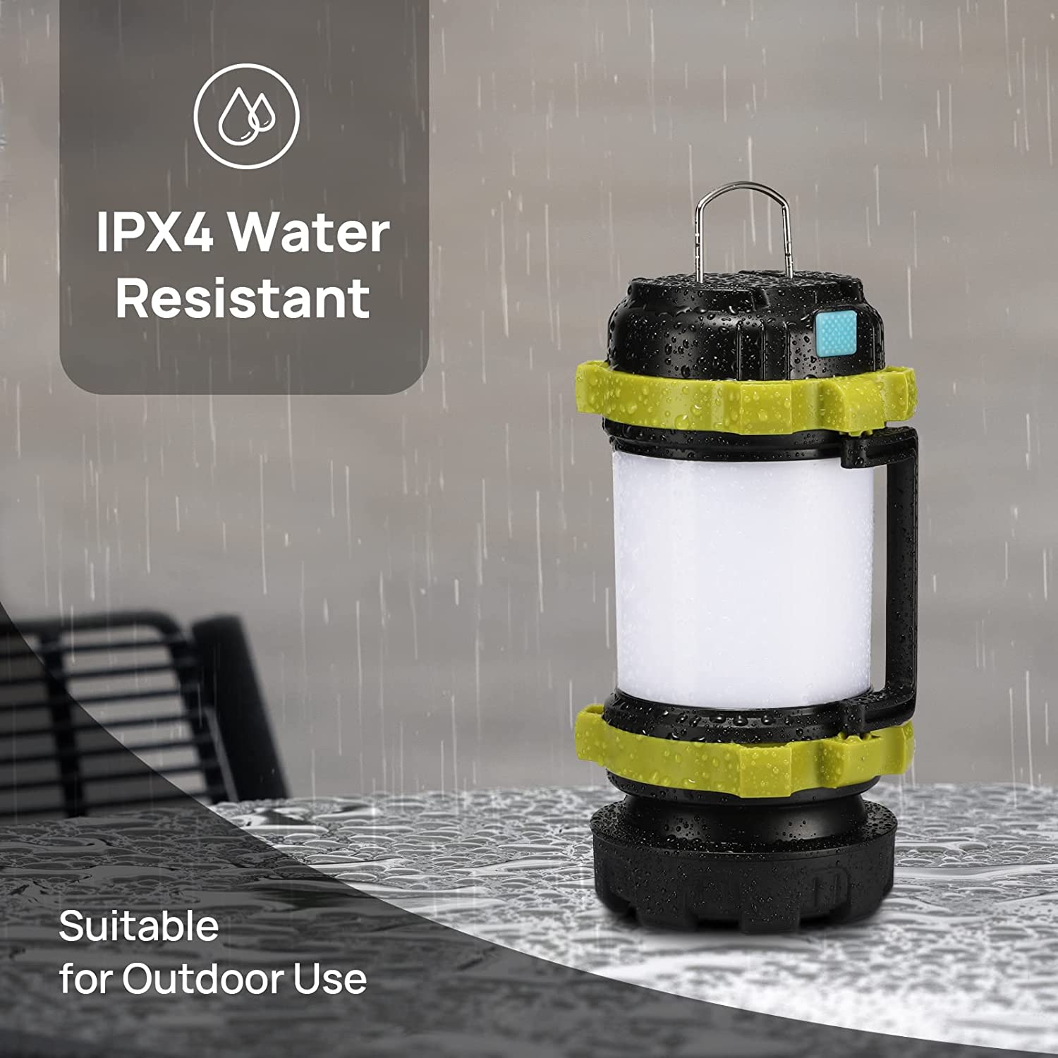 This outdoor camping light has a built-in 3600mAh battery together with a USB charging cable. The large capacity release your worries about spending long period time outdoors. Not only it can last long, but it can work as an emergency power output to temporarily charge your phone.