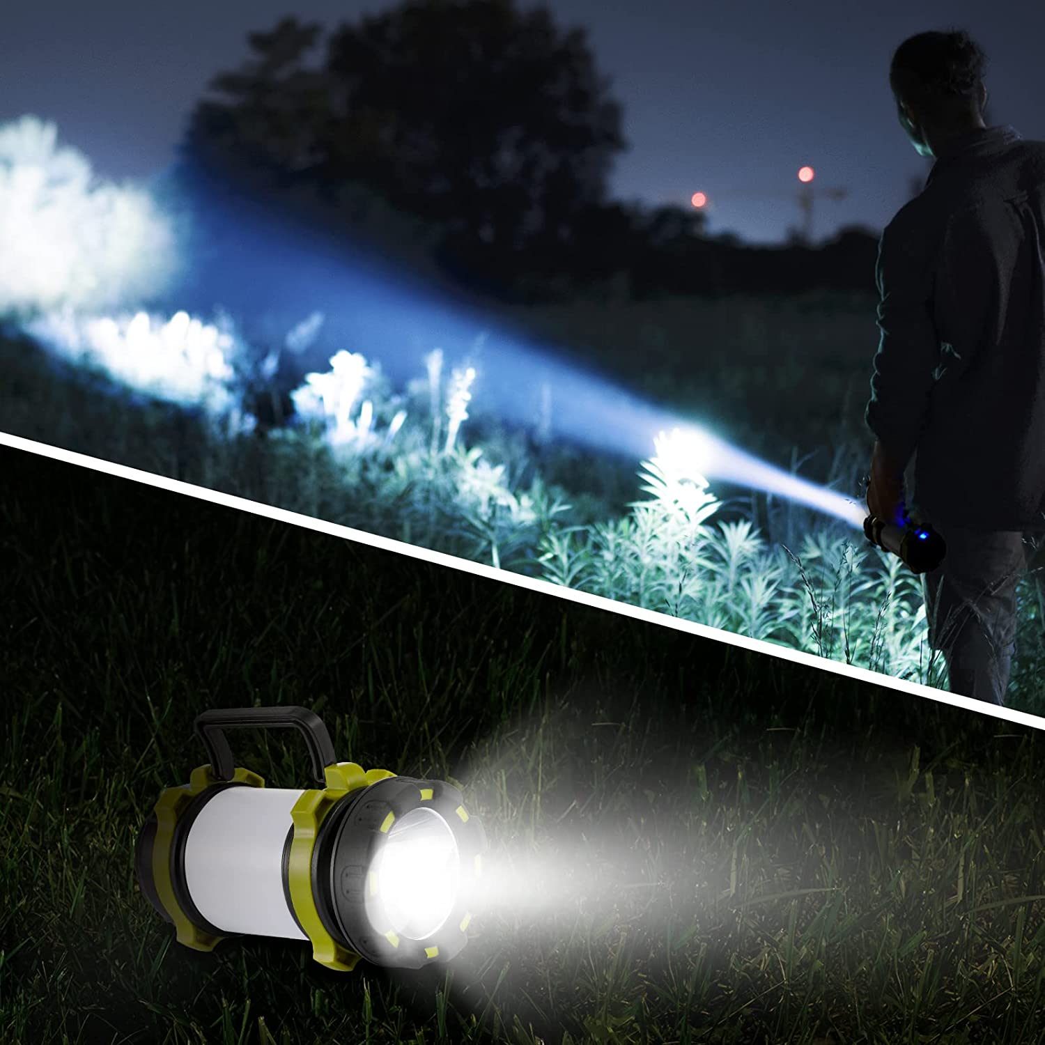 Rechargeable Camping Lantern Outdoor Emergency IP44 Waterproof LED Torch Light with Sidelight Multi-Functional Flashlight Searchlight with 6 Modes 3600mAh for Camping Hiking Christmas Gift [2 Years wa