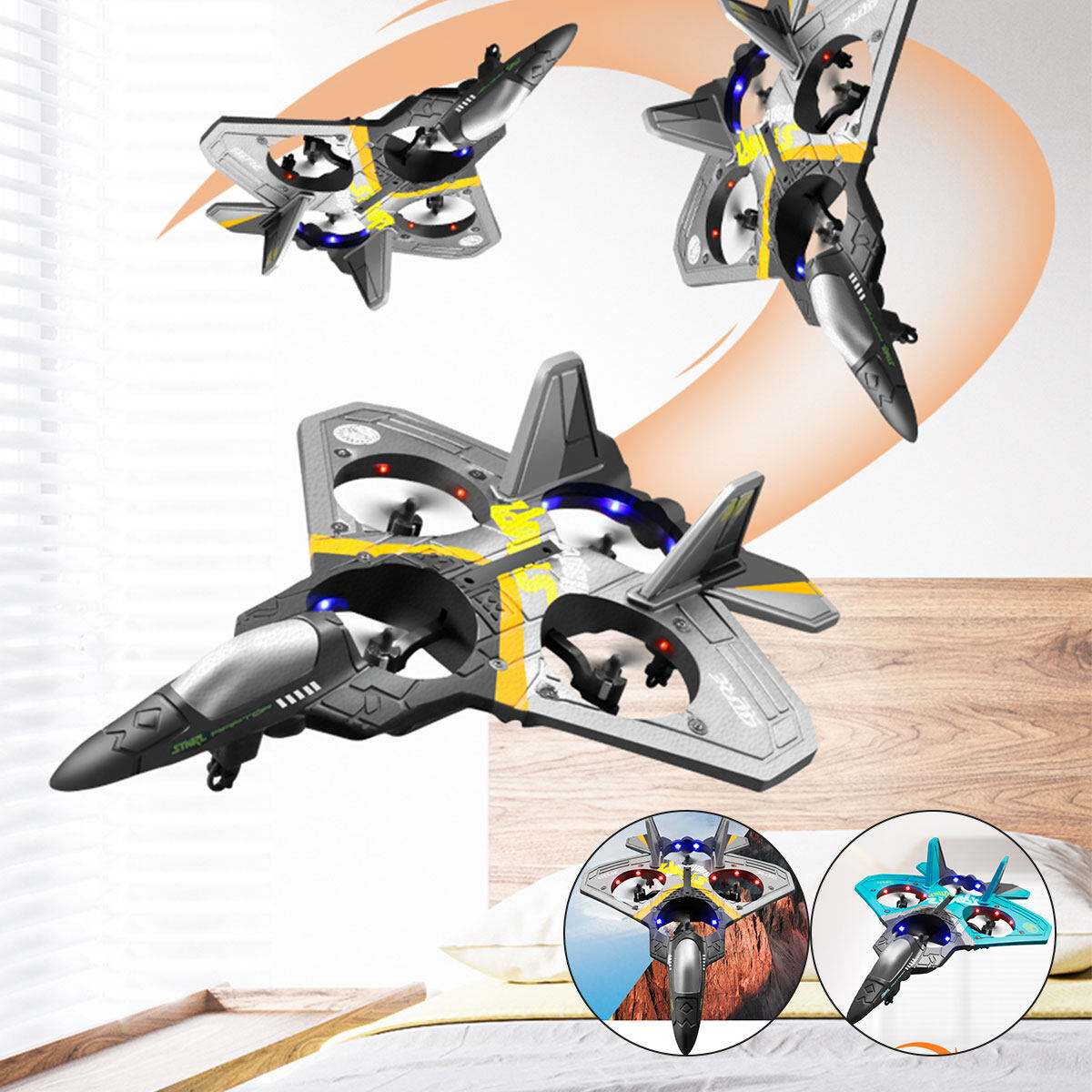 Rc Stunt Drone W/ 2 Channels 2.4g Rc Fighter Jet 360°stunt Flipping Quadcopter with Assisted Landing for Kids Ages 8+ Remote Control Helicopters Toy