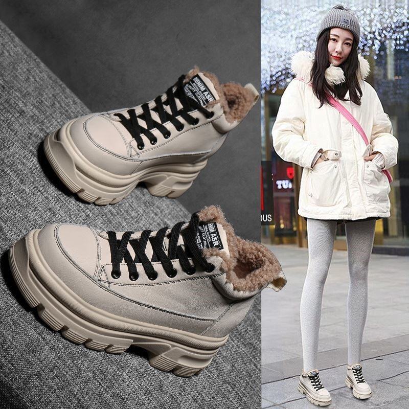 Elevator Dad Shoes Women's Shoes Autumn and Winter 2021 New Board Shoes Thick-Soled High-Top Shoes Genuine Leather Fleece-Lined Snow Cotton Shoes