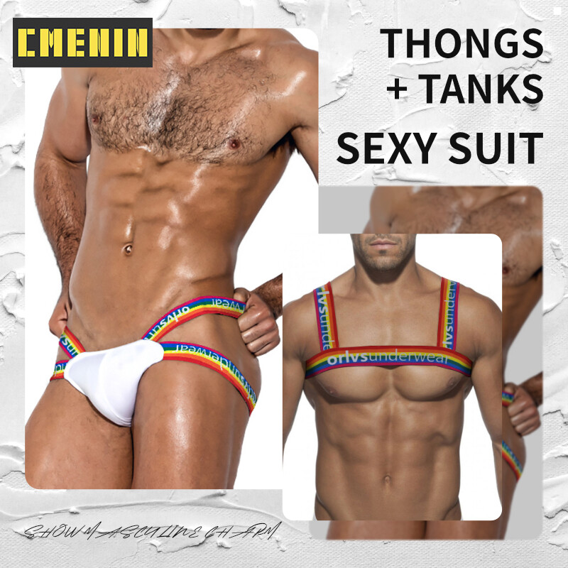 CMENIN Hot Sale Cotton Hip Raise Sexy Men Underwear Jockstrap Panties Stringi Men's Thong And Tank Top Set Man Underpants For Men BSTT16-20