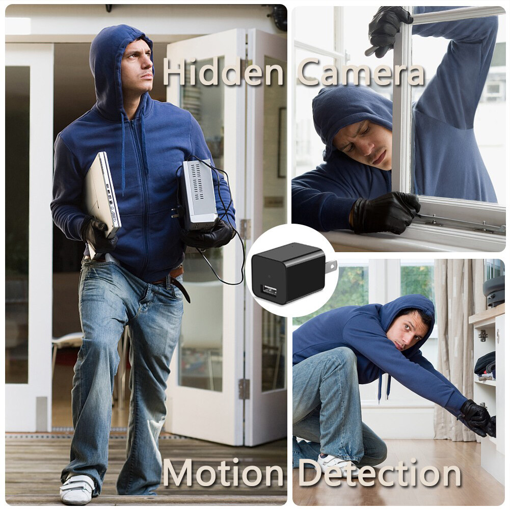 1. Loop recording and automatic saving: This security camera has a loop recording function. Video files are automatically saved every 5 minutes. When the memory card is full, the newest files will overwrite the old ones. You will never miss the important thing you want to know. Reminder: We recommend organizing files in time to save important video files.2. Fast plug and play: Just insert a micro card, plug it into a wall outlet or power bank or USB port and it will record automatically. (Note: TF card is not included, it needs to be purchased separately)