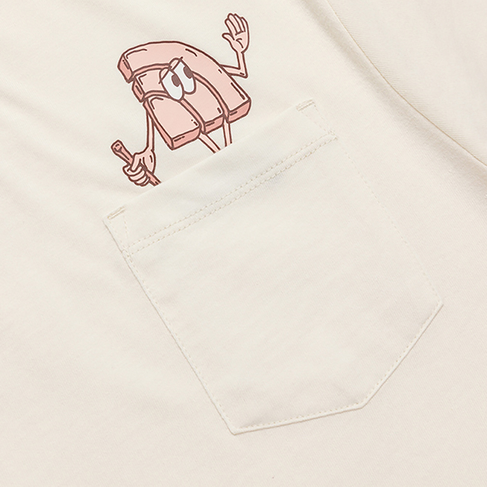 - No-hand, water-based, screen-printed logo graphic on chest