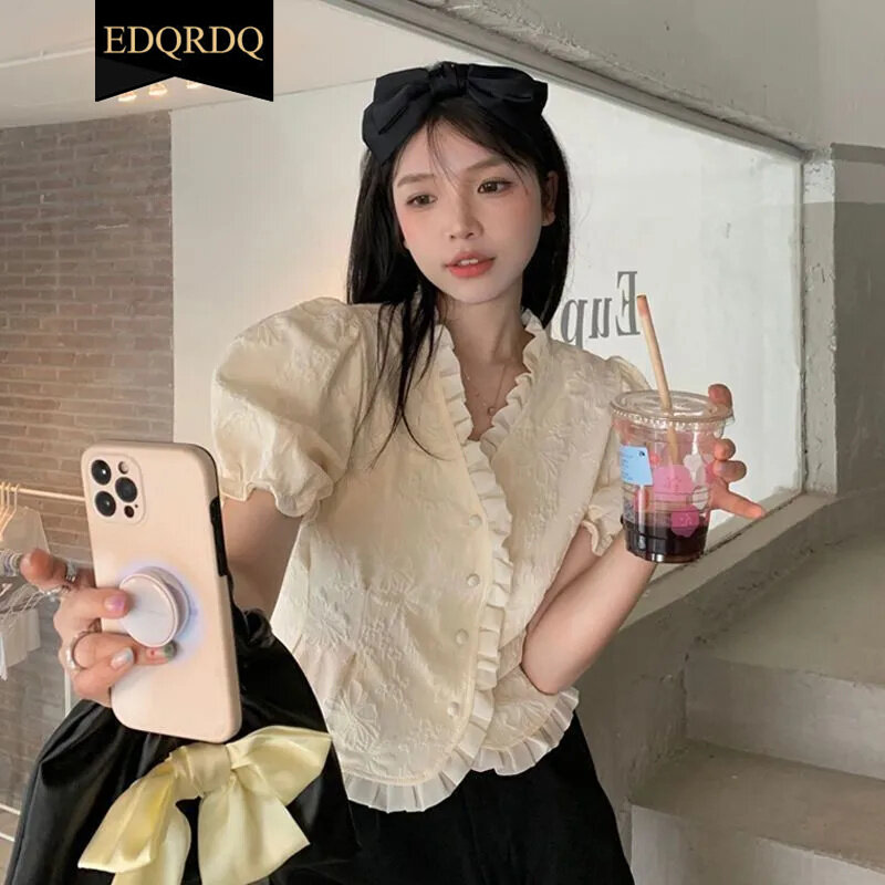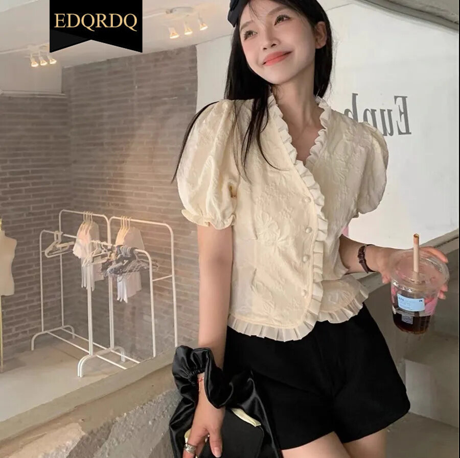 EDQRDQ Women Victorian Puff Sleeve Tops Vintage Ruffled Button Down Blouse
