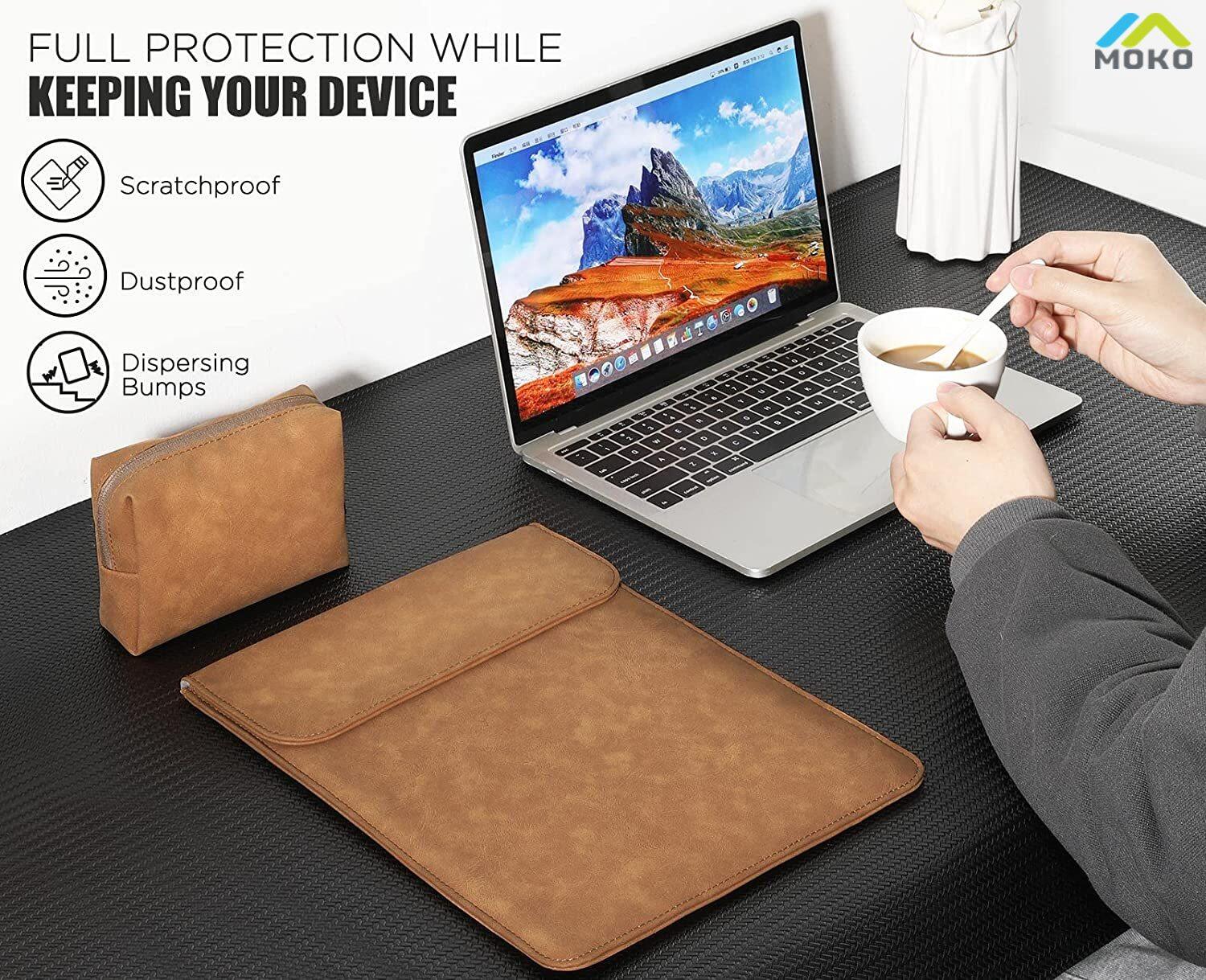 MoKo 13.3 inch laptop sleeve bag, stylish and elegant design, ideal for business and casual! The extra small bag satisfies your need to carry other items.COMPATIBILITYMacBook Pro 13 M1 2016-2021(A1706/A1708/A1989/A2159/A2251/A2289/A2338)MacBook Air 13 M1 2018-2021 (A1932/A2179/A2337)iPad Pro 12.9 M1 2021 2020 2018 (A1876/A2014/A1983/A1895/A2229/A2069/A2232/A2233/A2378/A2379/A2461/A2462)12.3 inch Surface Pro 7 Plus/7/6/5/4/313 inch Surface Pro X13.3 inch Dell XPS 13, 13.3 inch Galaxy Book S/Galaxy Book Flex/Galaxy Book Ion12.3 inch Pixelbook13.9 inch Huawei Matebook X ProTHE BEST CHOICE FOR YOU⭐It’s easy to slip into a backpack or briefcase without scratch and reduce the weight of your hands when you go outside.⭐Exclusive and trendy design, suitable for travel, business and leisure.⭐The soft interior protects your device from accidental damage, vibration and scratching.⭐It has a variety of uses. You may use the small bag as a makeup bag or storage bag.⭐Use the sleeve bag and small bag at the same time to keep your items organized.NEED ATTENTIONIt is recommended to use in the bare machine status.SUITABLE SIZE-Laptop sleeve bag-External dimension: 12.99*9.84* 0.59 inch (33*25*1.5cm)Internal dimension: 12.4*9.45 inch (31.5*24cm)-Small bag-The dimension of a small bag is 6.3*3.94*1.97 inch (16*10*5cm)There will be some deviation of the size which is measured manually. Please measure the dimension of your device before ordering.PACKAGE CONTENT1* Laptop sleeve bag1* Small bag