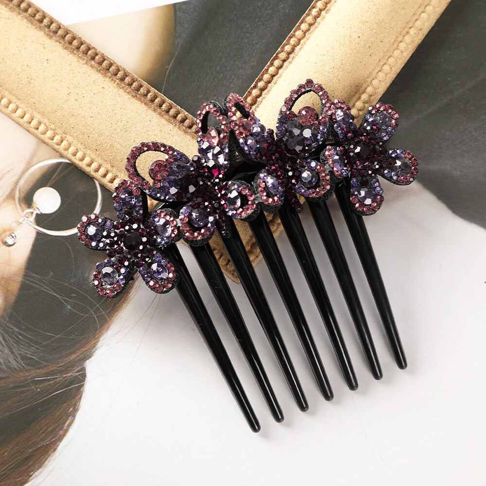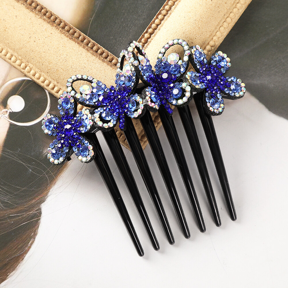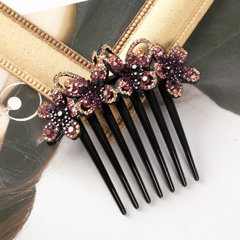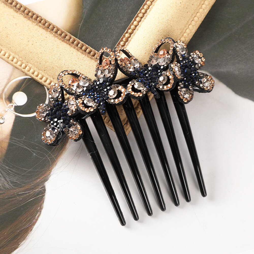 1pc Retro Rhinestone Seven-tooth Comb Bow Hair Clip for Women Non-slip Flower Hair Comb Hair Accessories