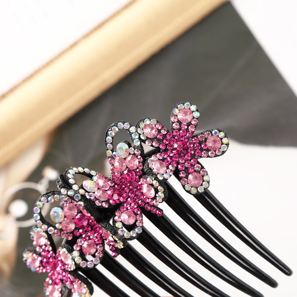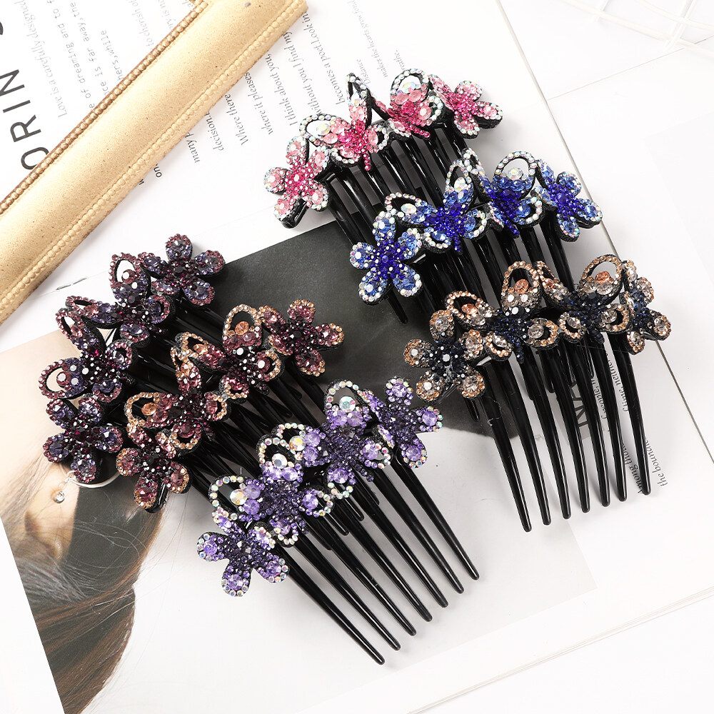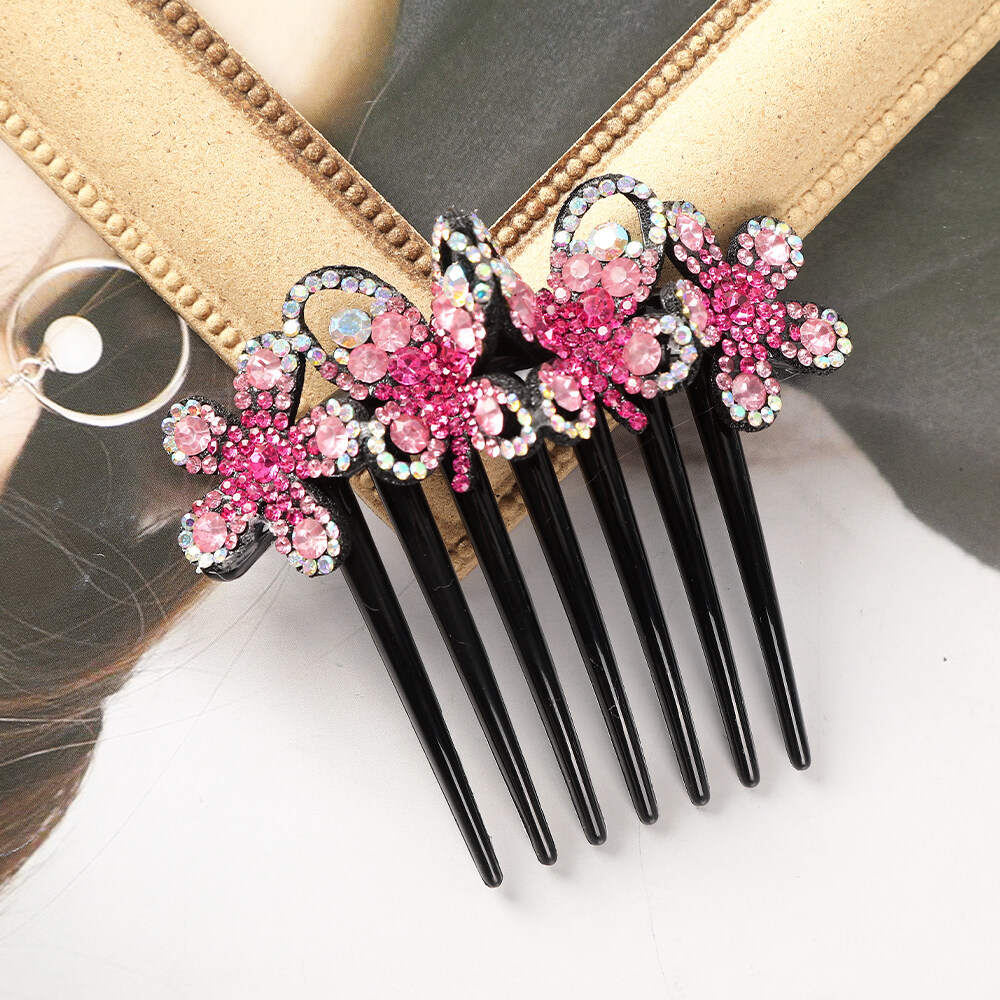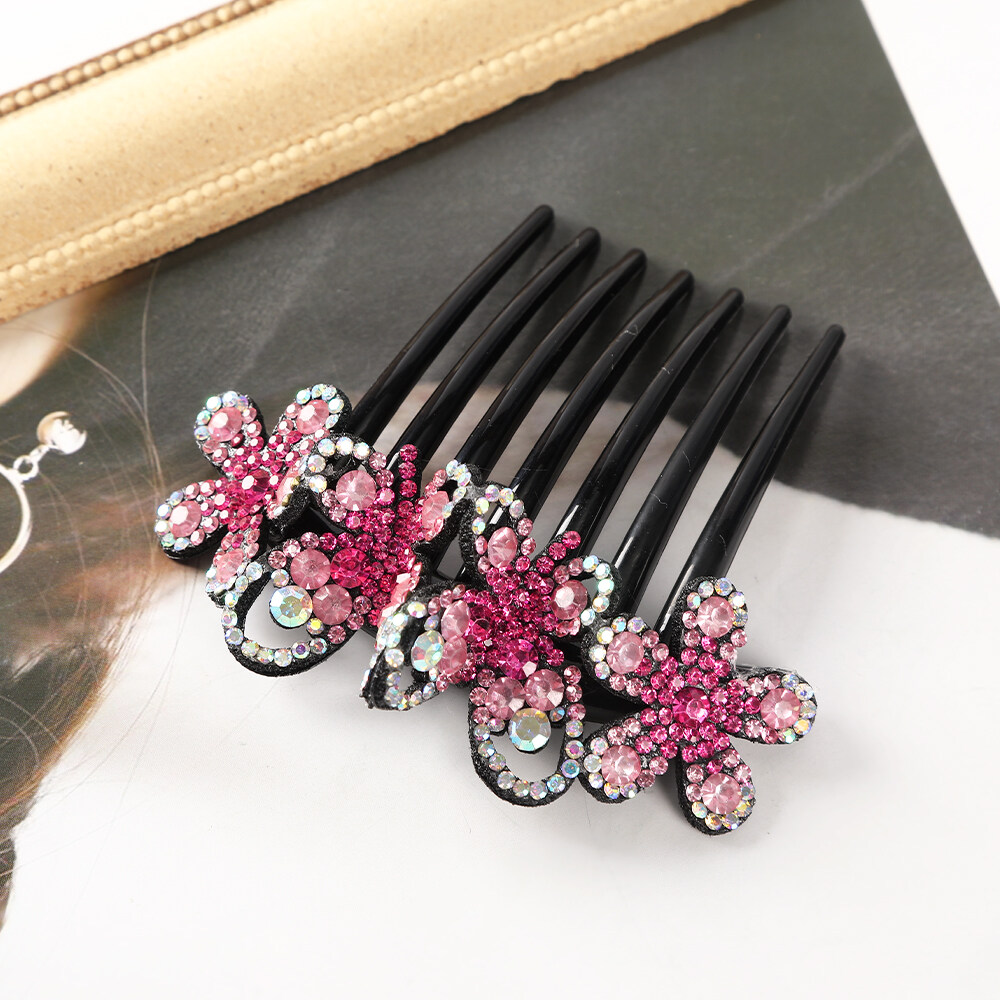 1pc Retro Rhinestone Seven-tooth Comb Bow Hair Clip for Women Non-slip Flower Hair Comb Hair Accessories