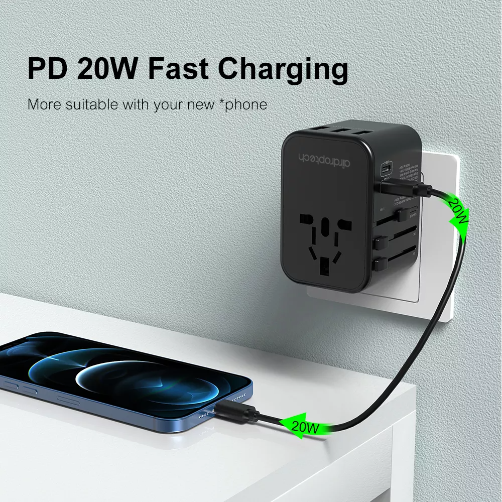 AIRDROPTECH 35.5W PD QC3.0 Type-C + 3 USB Port Quick Charge Universal Travel Adapter Wall Charger