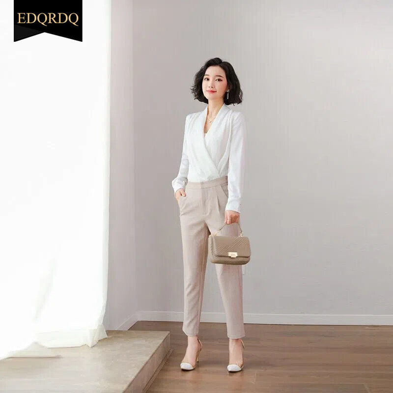 EDQRDQ Women's Casual Chiffon Tops V Neck Long Sleeve Elegant Shirts Wrap Blouses