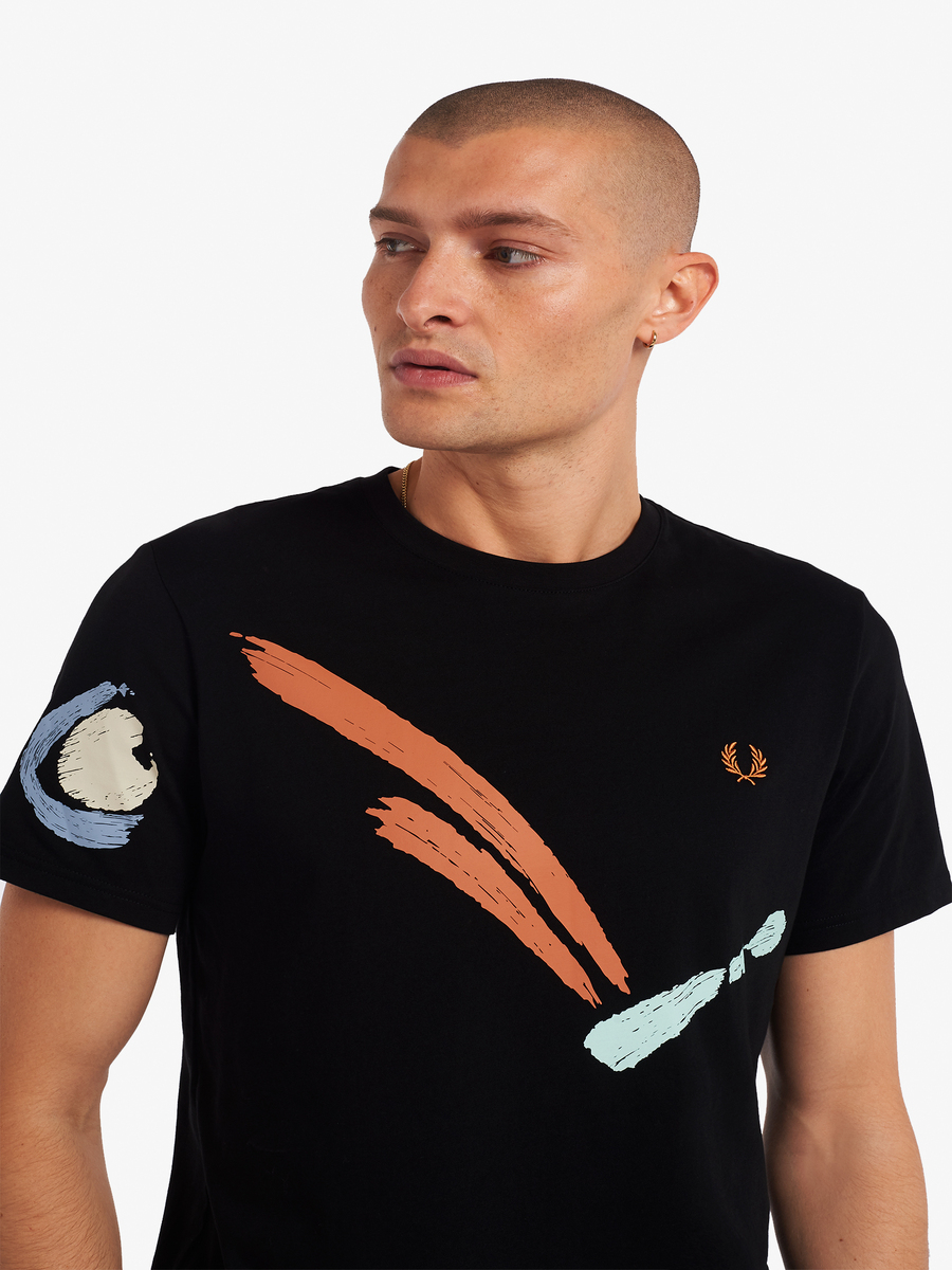 Inspired by designs from our archive, our Reissues collection reinterprets original pieces with directional styling. The graphic Tee may be a humble piece, but its relevance stretches back decades. During the late ‘80s and early ‘90s, printed graphics were bolder and brighter than ever - a sign of the times as multi-coloured sportswear took pride of place on the European tennis circuit – a long way from the strict whites of Wimbledon. For this piece, we delve into our archive to revive an abstract bouncing ball graphic. Fred Perry through and through.