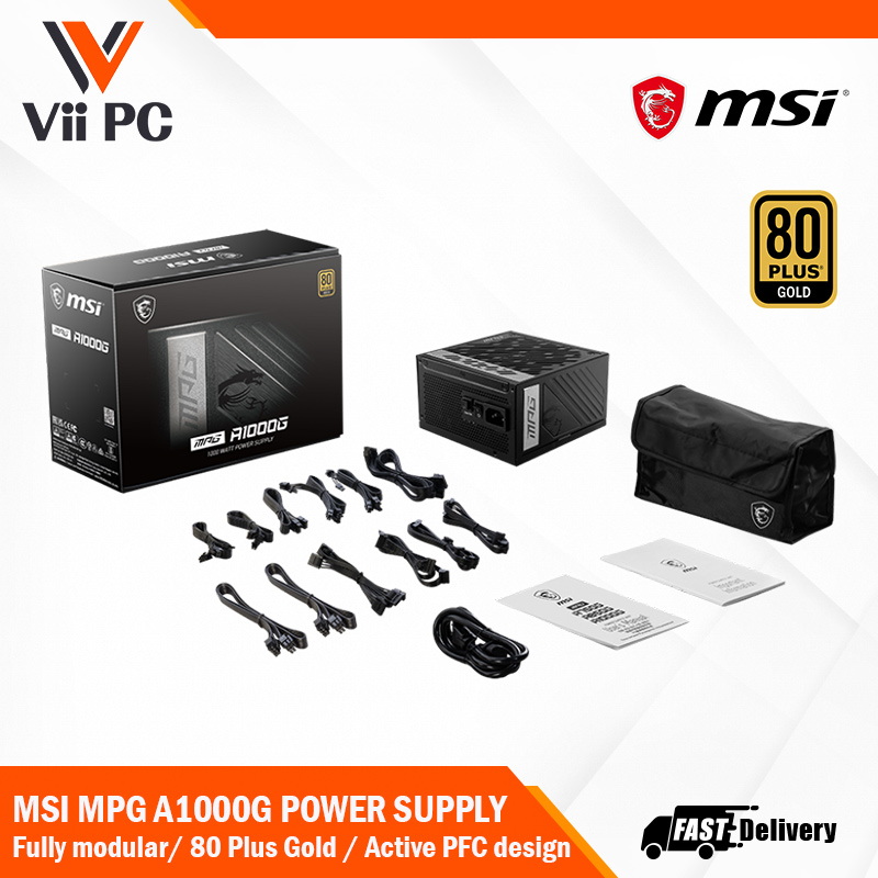 MSI MPG A1000G 1000W/80Plus Gold/Full Modular/Flat Cables/100% Jap Capacitors, power supply