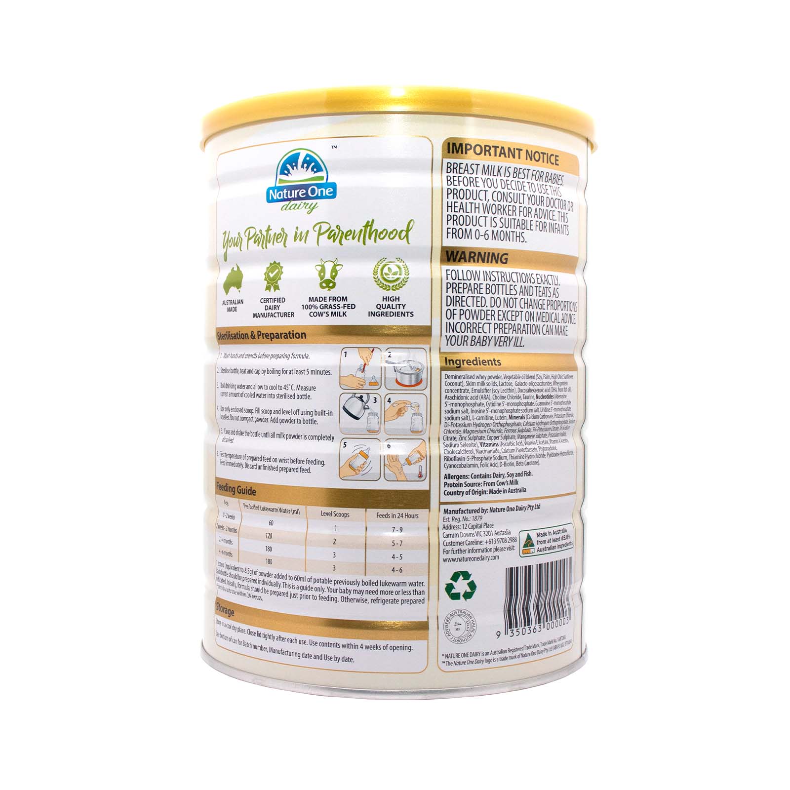 Nature One Dairy Premium Newborn Infant Formula Step 1 900g