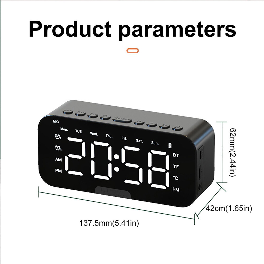 LED Alarm Clock Bluetooth Speakers Wireless Alarm Clock with FM Radio USB for Bedroom LED Digital Display Sleep Timer