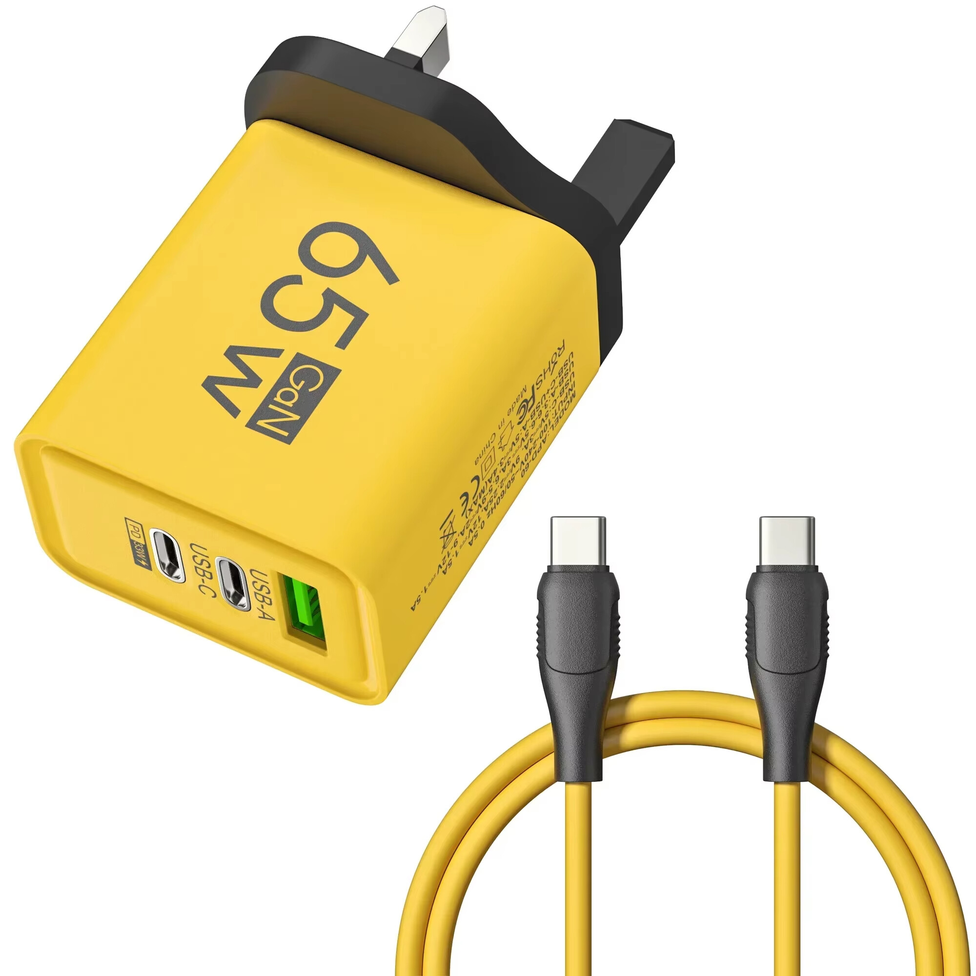 The 65W 3-port charger features a versatile charging solution with 1 USB a and 1 USB C port, as well as a PD 33W output, allowing you to easily charge multiple devices at the same time.
