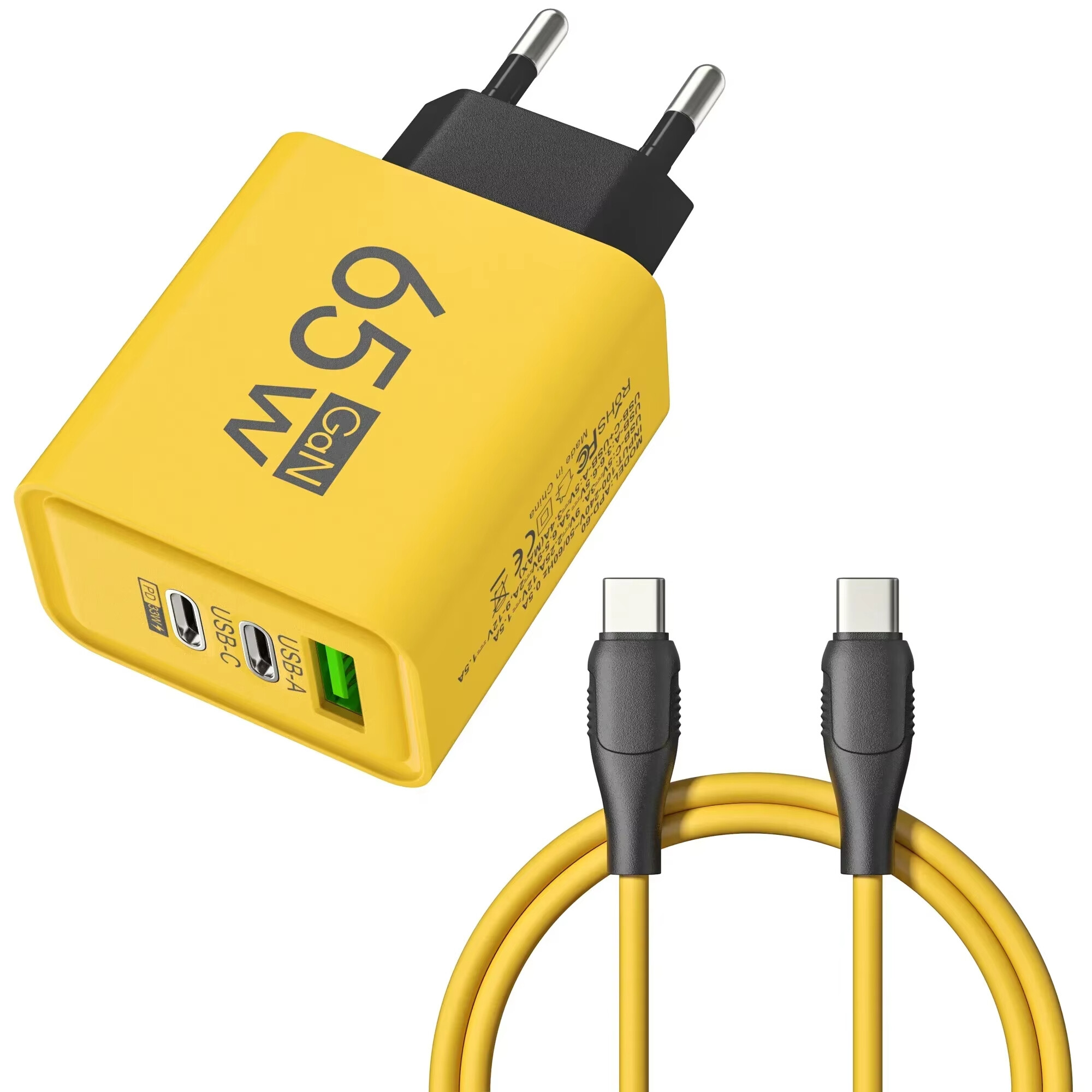 High-speed Charging Chargers 65W GaN USB PD 3 Ports Mobile Phone USB C To Type C Data Cable Cord QC 3.0 Cellphone Wall Adapter