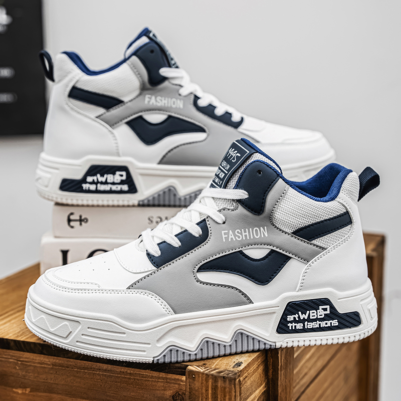 【READY STOCK】Men's high top sports shoes, outdoor casual board shoes, thick soled lightweight sports shoes, round toe lace up running shoes.