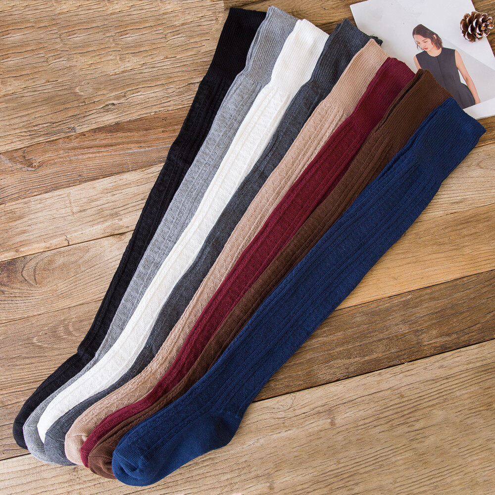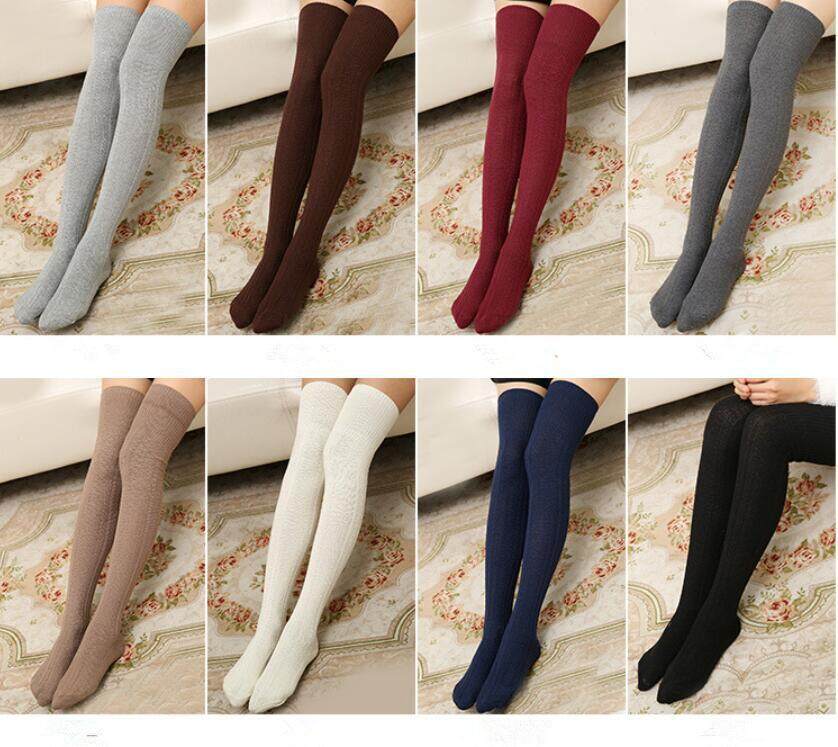 Yingbao Korean style Long Socks Thick Women Thigh High Over The Knee Winter warm Cotton knitted ladies Casual Boot Stockings Leg Warmers White Black Maroon Dark Blue Grey