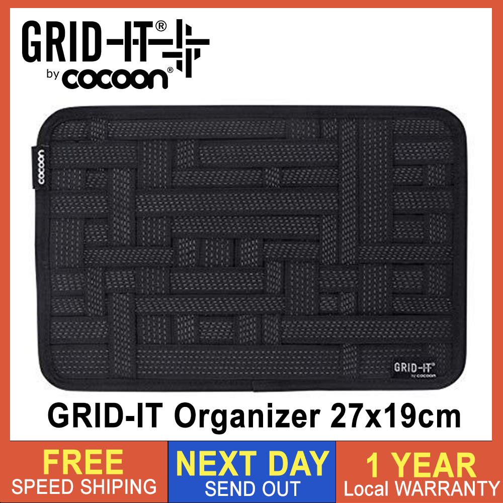 Backpack Insert Organizer 27 x 19 cm, Universal Accessories Organizer, Cocoon GRID-IT Accessory Organizer With Back Zip Pouch Hard Drive Case Cable Organizer Grid Pad (Black) [Local Warranty]