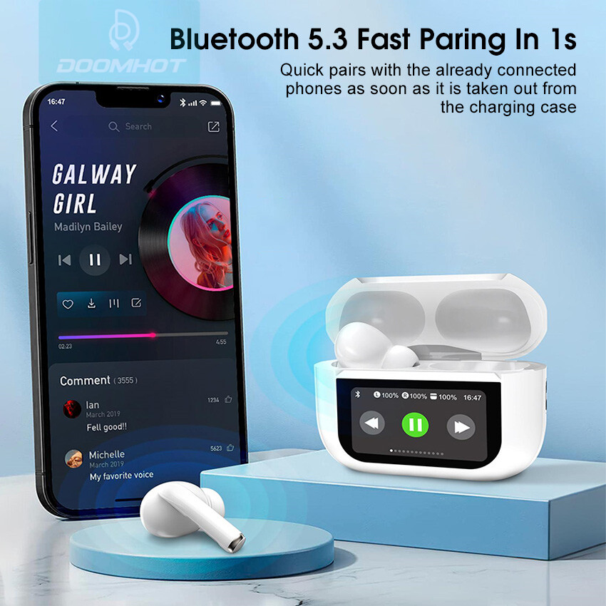 DoomHot Bluetooth Earphones LCD Touchscreen ANC TWS Bluetooth Headset Earphone Touch Screen V5.3 Smart Screen Active Noise Reduction Comfortable Earphone