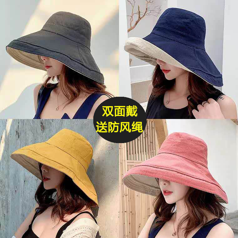 Small Head Circumference Autumn and Spring Practical Big Brim Double-sided Hat Female Versatile Travel Sun Protection UV Sun Hat Fisherman Hat