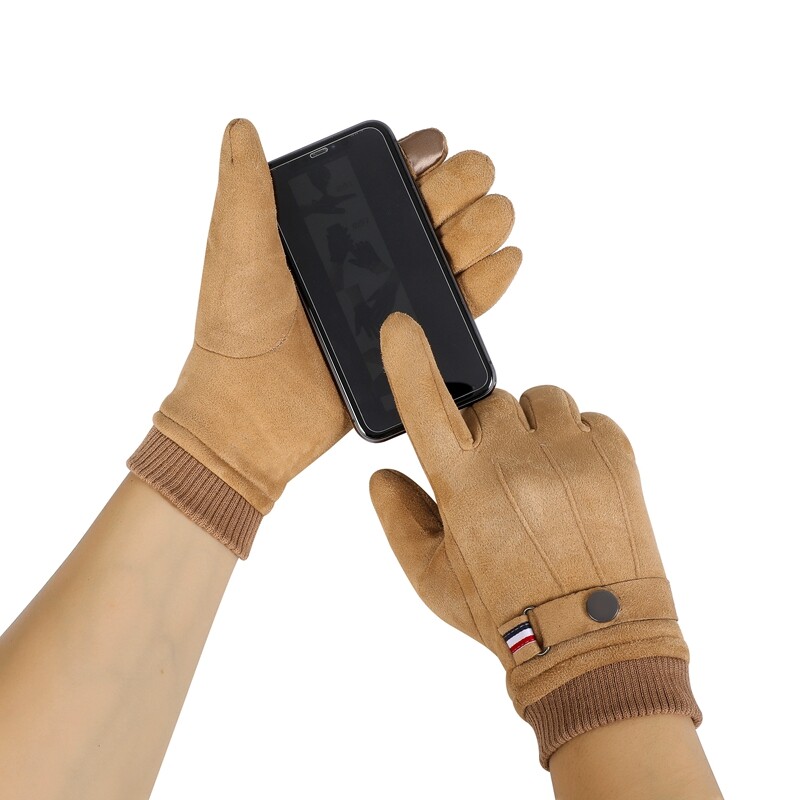 Suede Men Gloves Winter Touch Screen Windproof Driving Guantes Thick Cashmere Anti Slip Outdoor Male Gloves