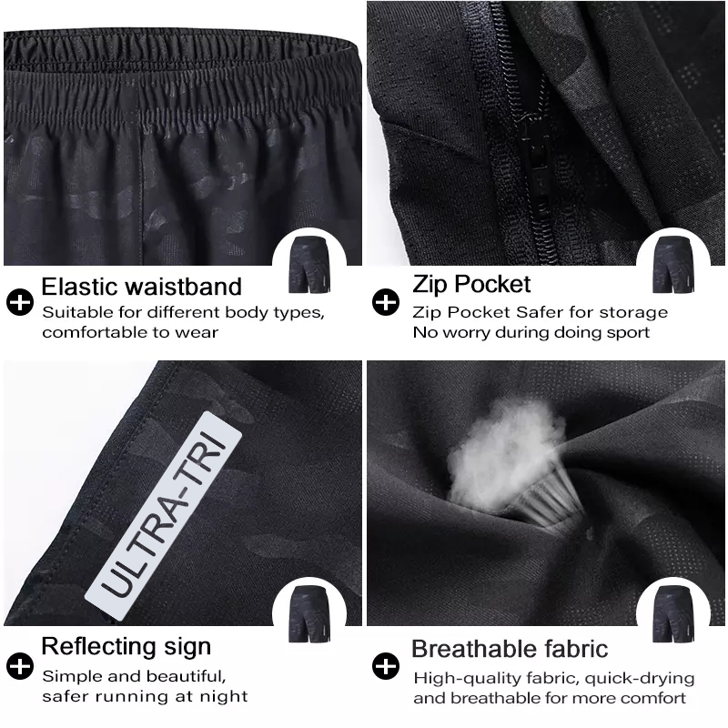 Running Shorts Men Quick Dry Sports Jogging Fitness Light-reflective Short Pant