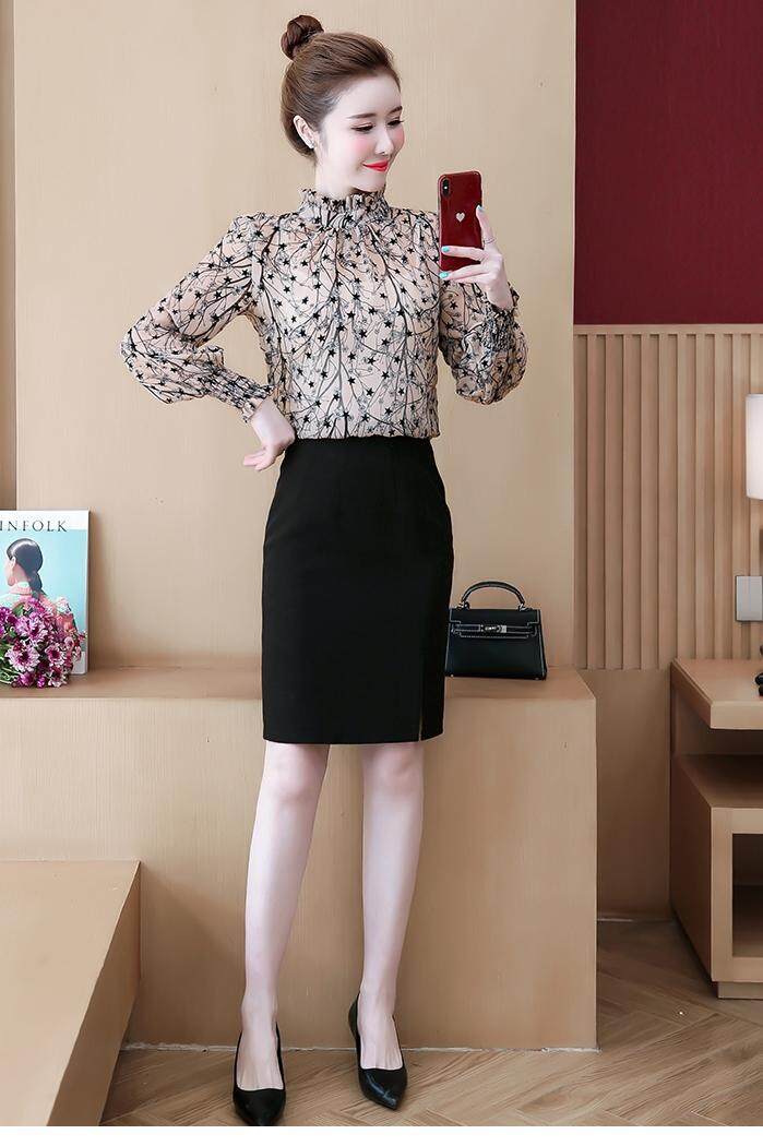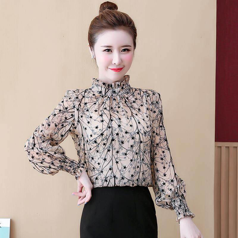 AFEG new Korean women's fashion casual long-sleeved floral chiffon wild temperament elegant blouses