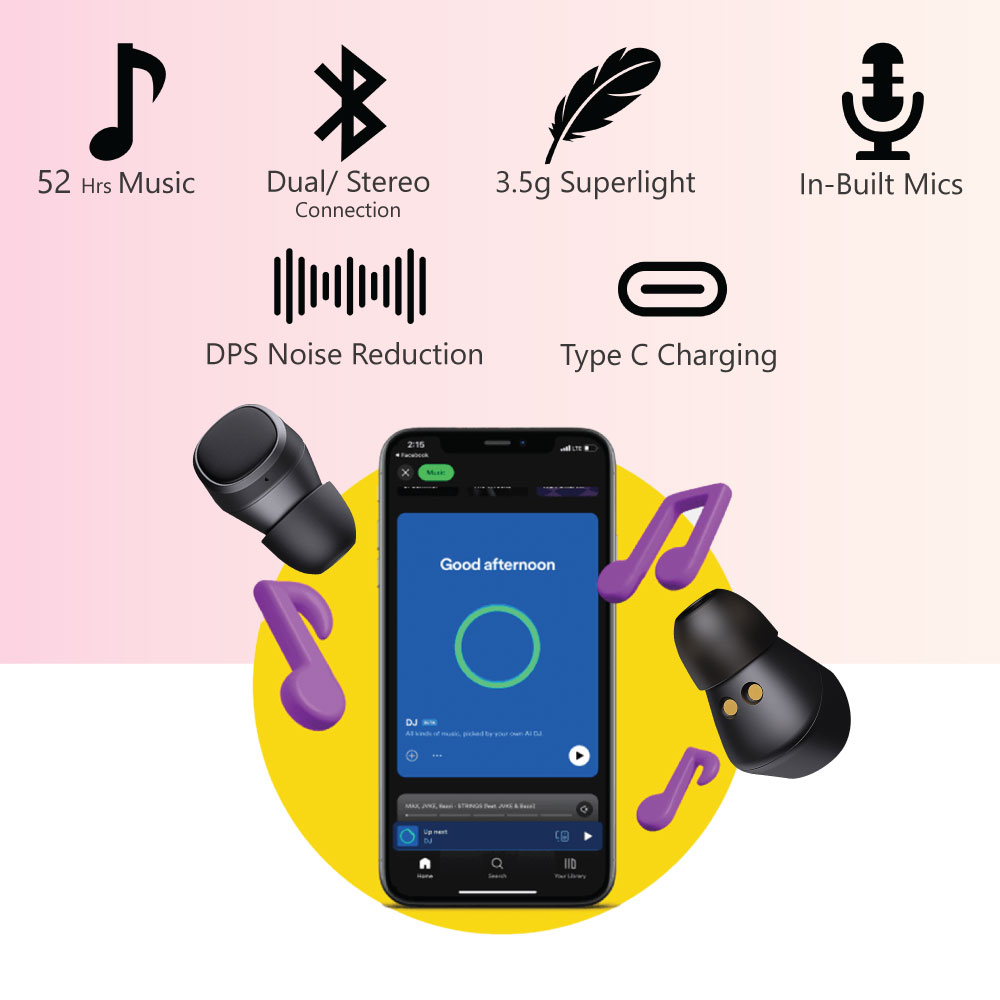 Blackdot Pro 2024 Wireless Earbuds With 52 Hrs Music, Bluetooth V5.3 Earphone, Type C Case, High Bass, High Audio Quality, One Touch Control & IPX6 Waterproof