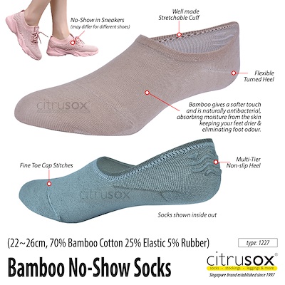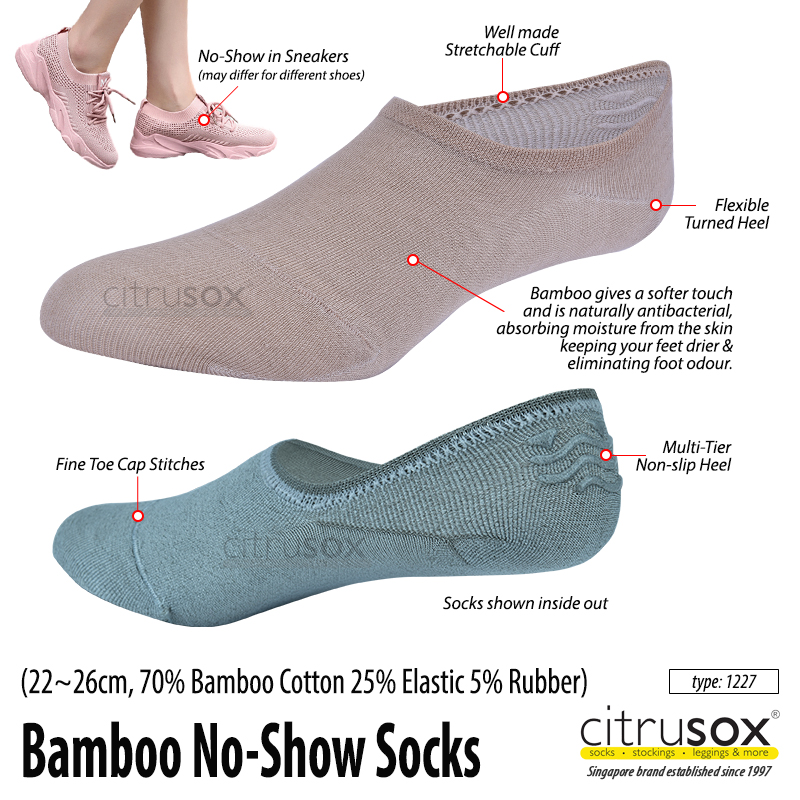 CITRUSOX [3 Pairs] Bamboo No-Show Socks with Non-Slip Inner Heel (22-26cm, EU 37-41) #1227 #sneakers #hidden #invisible