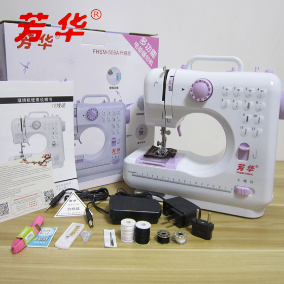 Original Fanghua 505A Mini Desktop Electric Sewing Machine 12 Stitches Household Multifunction Double Thread And Speed Free-Arm Crafting Mending LED