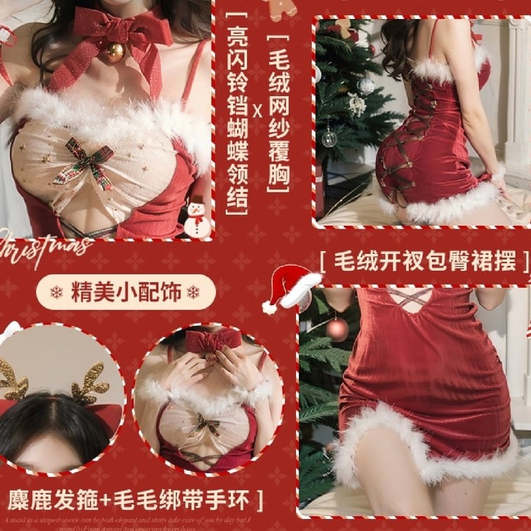 Bella’s Fantasy Women's Christmas Sexy Lace Lingerie Set See Through Sleepwear Sexy Nightgown Gift Set Red One Size