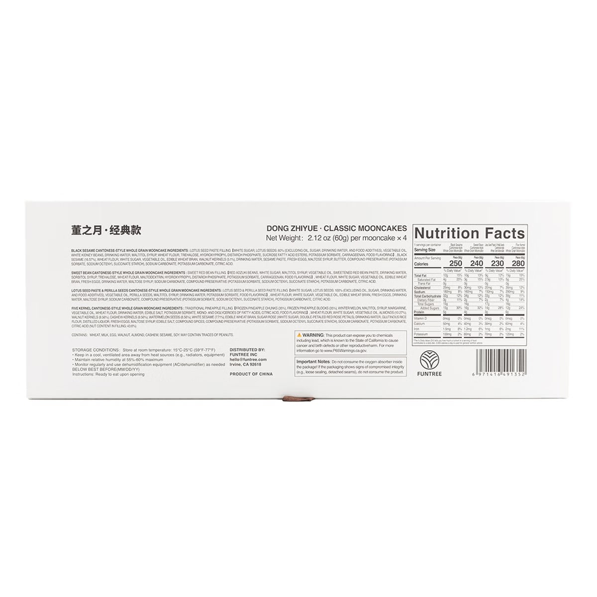 Dadong Dongzhiyue - Classic Cantonese Whole Grain Mooncake Gift Box, 4 pieces, 240g